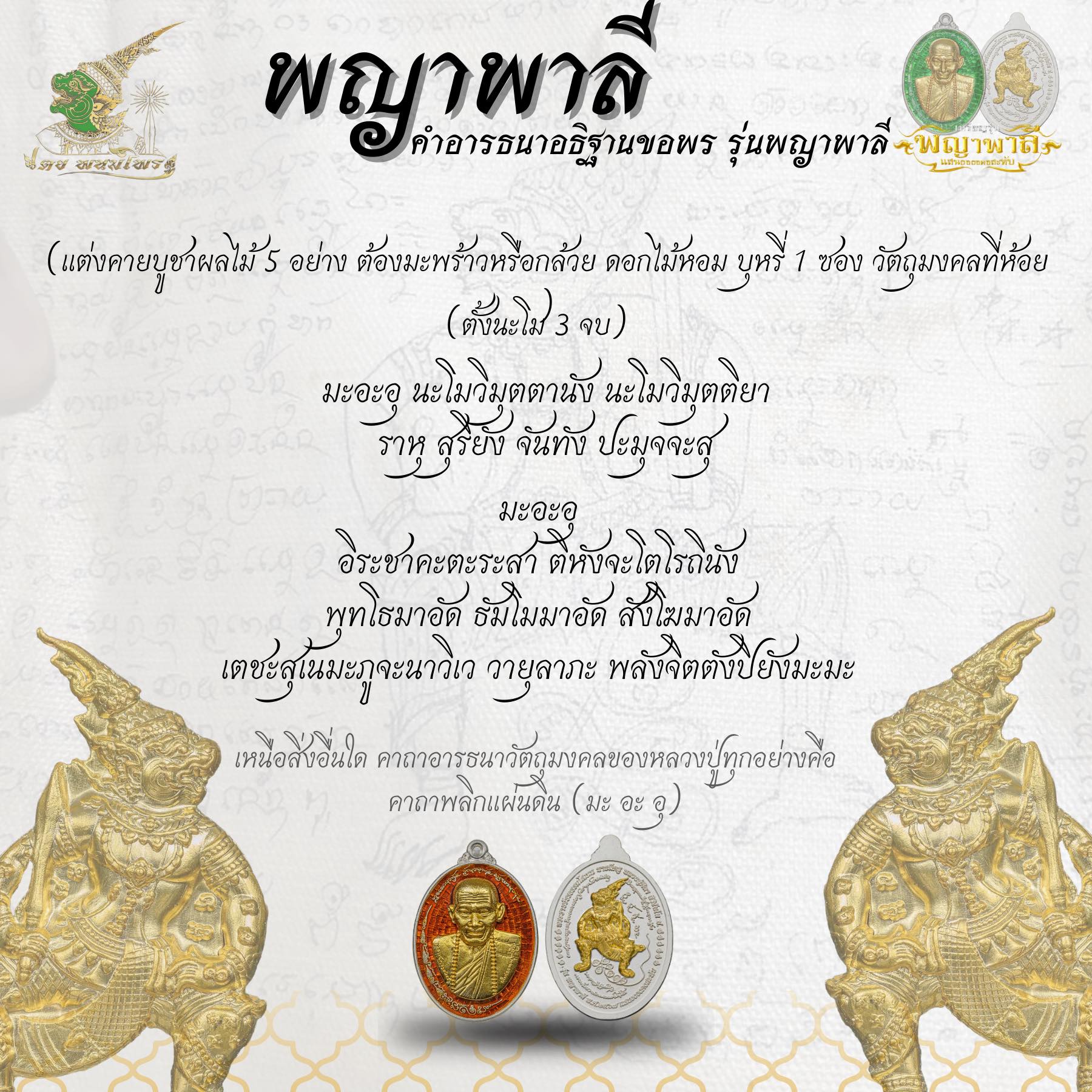 - คําอาราธนาอธิษฐานขอพร พญาพาลี -
